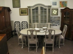 Grålackerad m dekor i ljusblått.. 2 st iläggsskiva a 48 cm/st medföljer.. längd enl. bild 200 cm