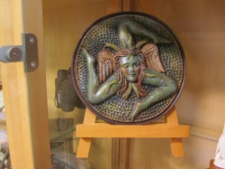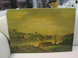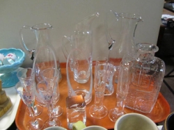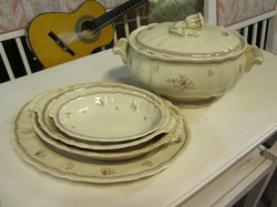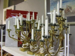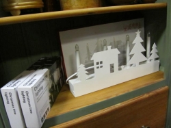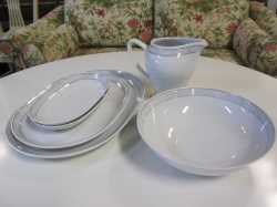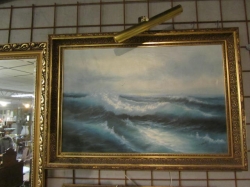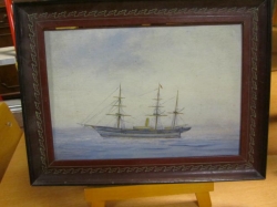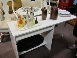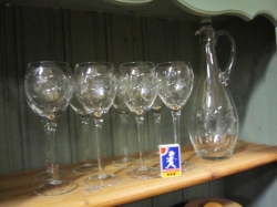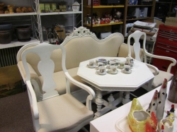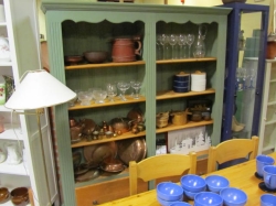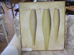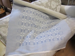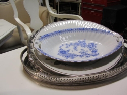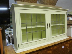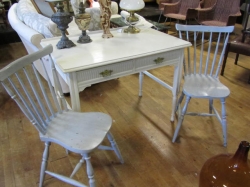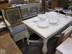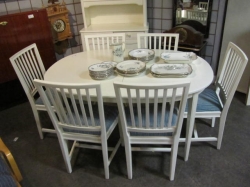 Grålackerad m dekor i ljusblått.. 2 st iläggsskiva a 48 cm/st medföljer.. längd enl. bild 200 cm