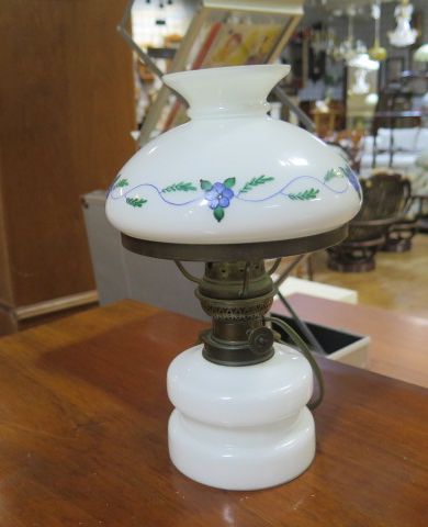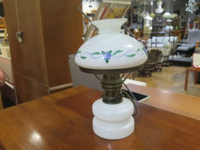 453. Äldre elektrifierad bordsfotogenlampa i glas.. h-28 cm