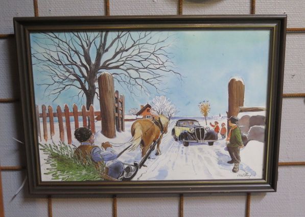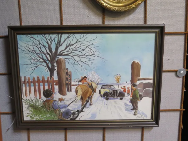 Äldre inglasad tavla b:52 cm