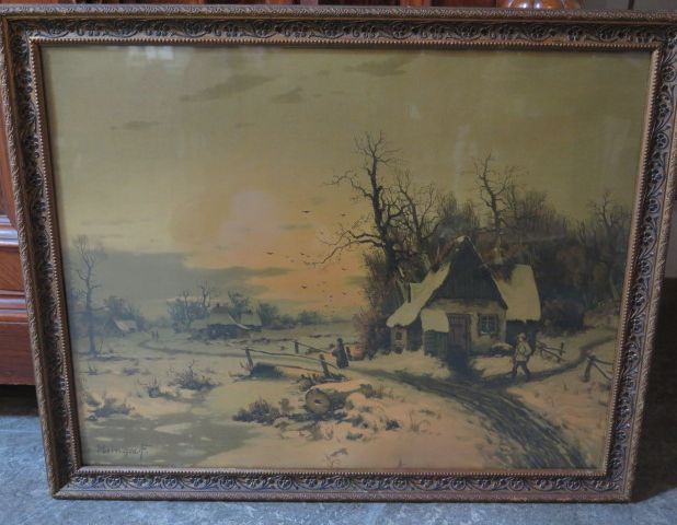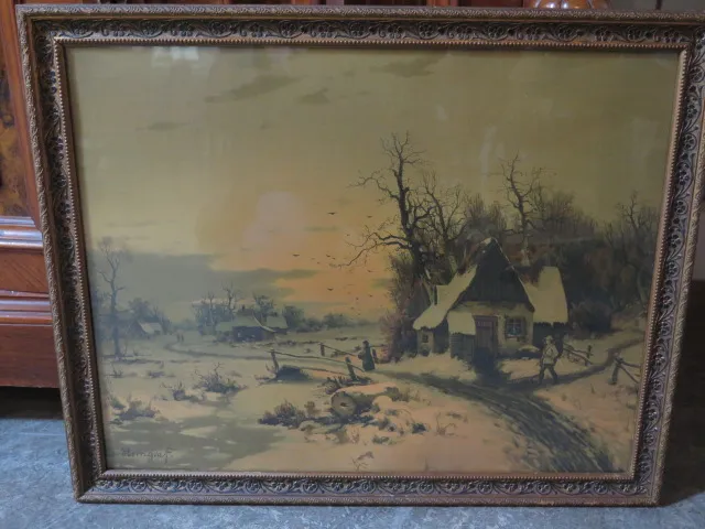 Äldre inglasad tavla b:55 cm