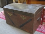 Äldre järnbeslagen kista med välvt lock l:82 cm