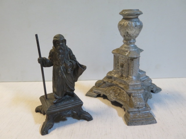 Äldre metallfigurin/ljusstake h:15-22 cm