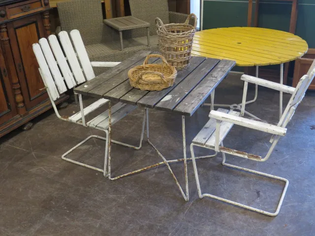 30. Äldre trädgårdsgrupp Grythyttan.. bord, paret karmstolar..
