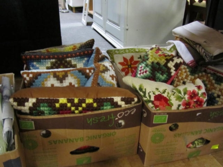 2 lådor broderade kuddar...