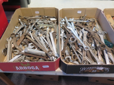 216. Låda verktyg hulsnycklar skiftnycklar mm