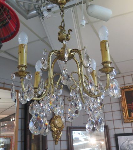 607. 4 armad kristallkrona 40-tal h.55 cm