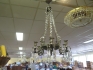 561. 5 armad antik kristallkrona tenn för levande ljus d:38 cm