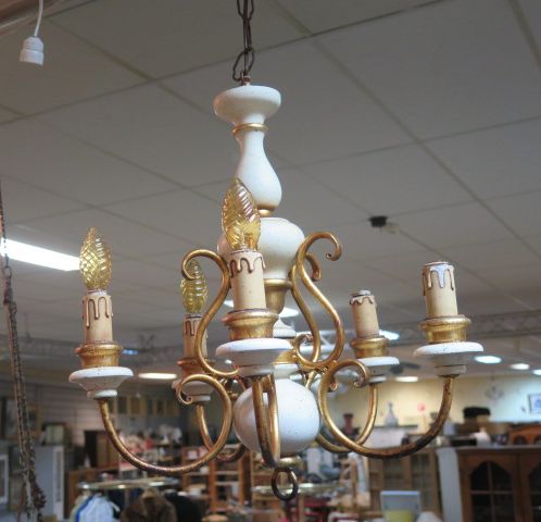 569. 5 armad gulddekorerad taklampa