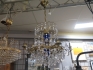 5-armad tät kristallkrona m blått stamglas.. d-48 cm
