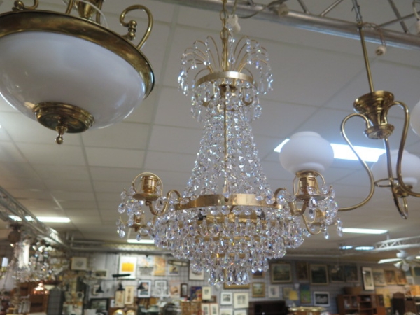 715. 6-armad glittrande kristallkrona.. d-44 cm.. h-55 cm