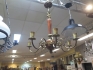 573. 6 armad taklampa trä/mässing d:60 cm
