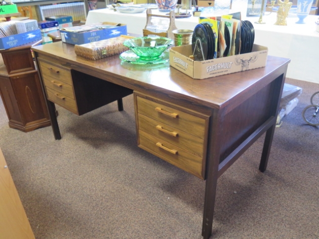 6-lådigt skrivbord Palisander.. 70-80-talet.. l-140 cm