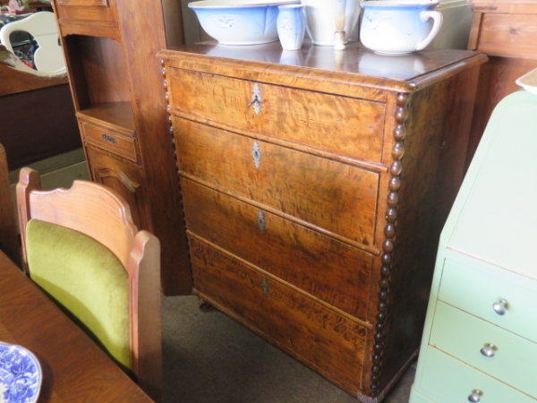 380. Antik 4 lådig byrå valnöt 1800-tal b:86 cm