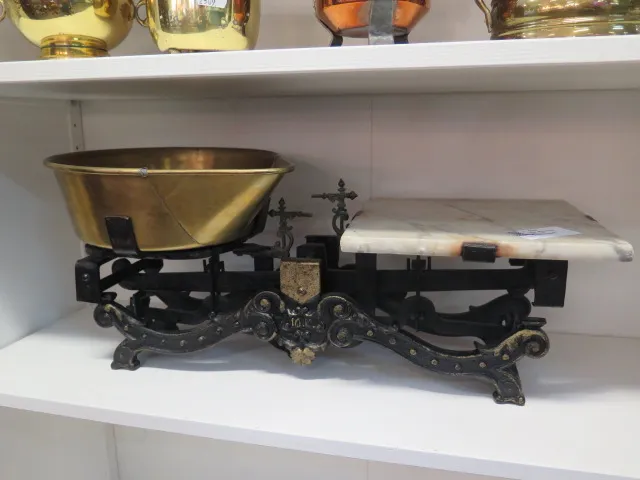 Antik affärsvåg 10 kg m mässingskål