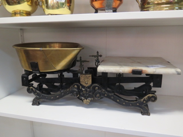 363. Antik affärsvåg 10 kg m mässingskål