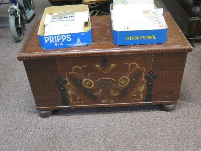 Antik Dalamålad kista.. l-90 cm