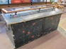 397. Antik järnbeslagen träkista/hatthylla l:160 cm