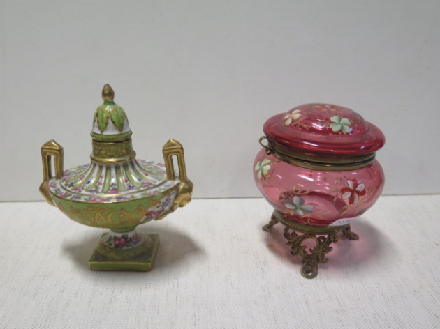82. Antik luktdosa/handmålad lockskål
