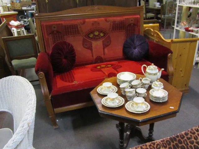 Antik panelsoffa jugend / 8 kantigt antikt bord