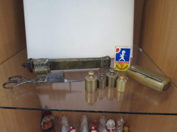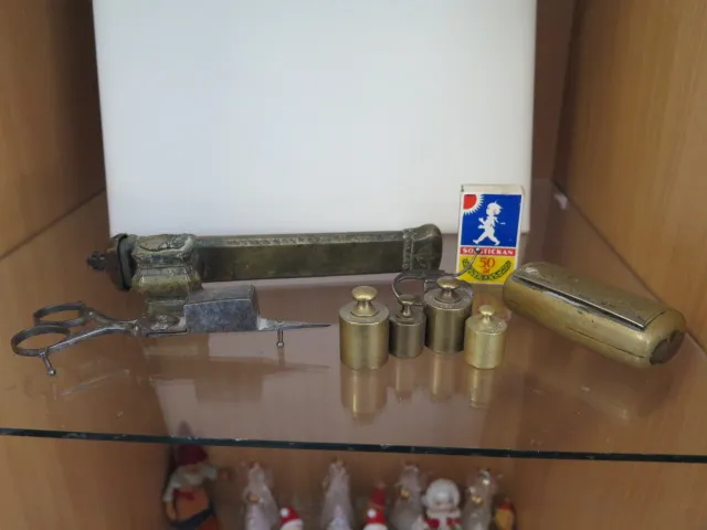 Antik resebläckhorn/pennhållare /mässingvikt /ljussax /snusdosa