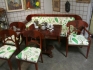 Antik salongsgrupp KJ mahogney 6 delar soffa l:225 cm klädd Josef Frank tyg