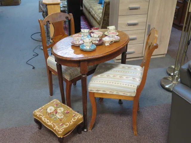 88. Antik sittgrupp ovalt bord paret stolar fotpall 1800-tal