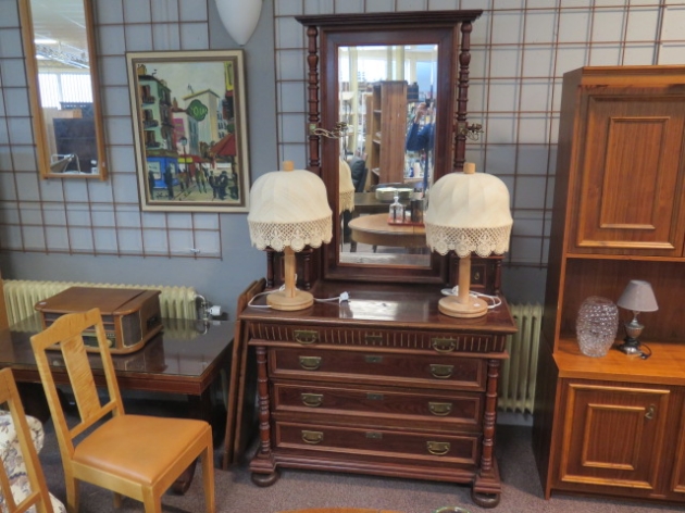603. Antik spegelbyrå nyrenässans 4 lådor