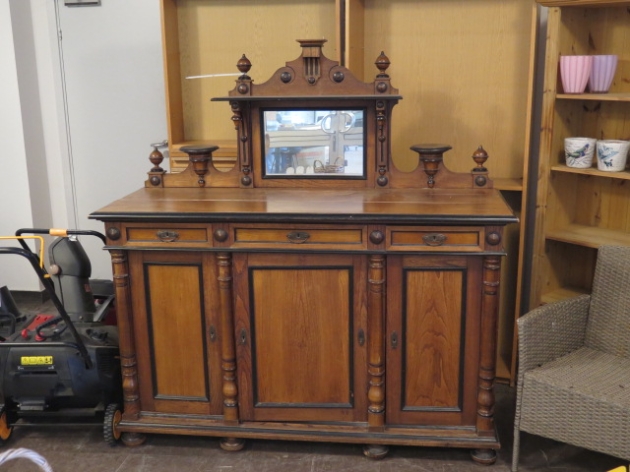 31. Antik spegelskänk Ek 1800-tal.. 166x60x108 cm.. tillk. spegel