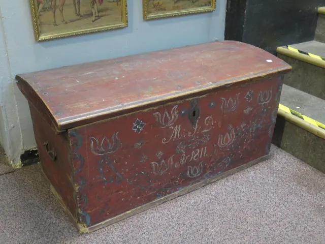 Antik träkista 1811 m välvr lock.. l-108 cm