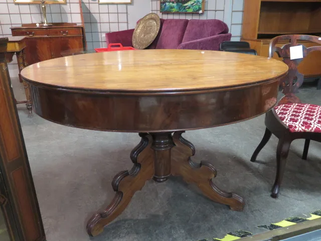 Antikt ovalt salongsbord valnöt 1 ilägg l:120 cm