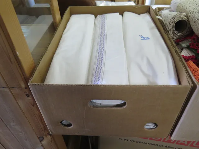 Bananlåda fylld m fina lakan mm.. c:a 15 st
