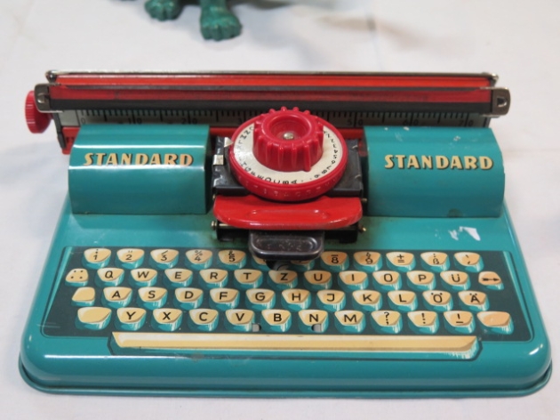 Barnskrivmaskin plåt/plast Tyskland 1950-60-tal