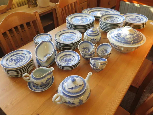 Blå-vit kinesisk mat-och kaffeservis 40 delar
