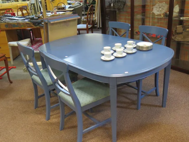 Blåmålat matgrupp bord 2 ilägg 4 stolar