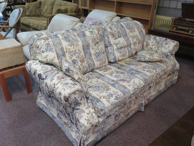 592. Blommig textilsoffa