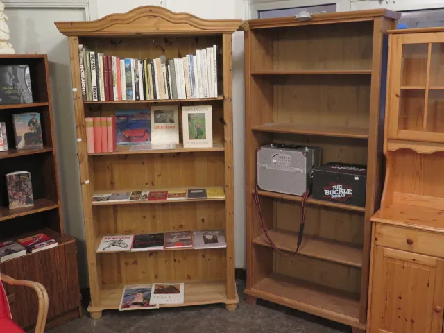 23. Spröjsat vitrinskåp furu.. b-120 cm