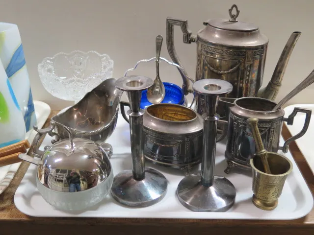 234. Bordsgarnityr ljusstakar såssnipa mortel mm