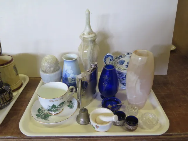 380. Bricka emaljerad Kockums blommig nattkärl mm