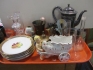 311. Bricka bordsgarnityr figuriner vas mässingmortel mm