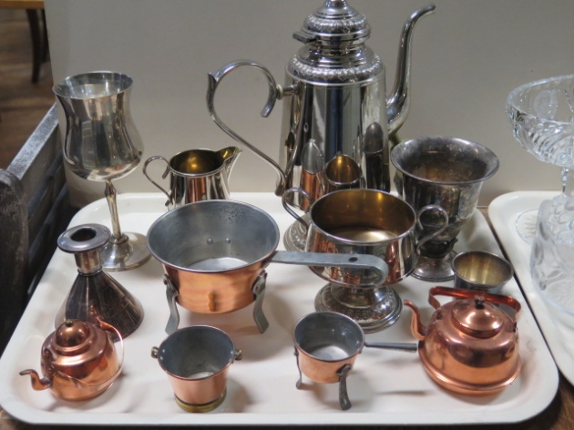 Bricka bordsgarnityr småkoppar mässingmortel...