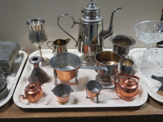 306. Bricka fotskål paret bordsljusstakar skålar vas...