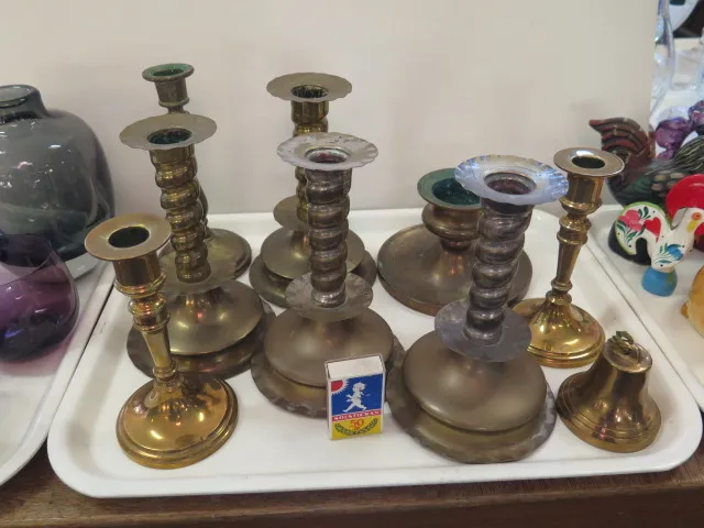 343. Bricka bordsljusstakar mässing