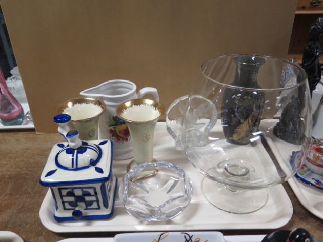 227. Bricka smörgåsbestick konstglas figuriner...shaker