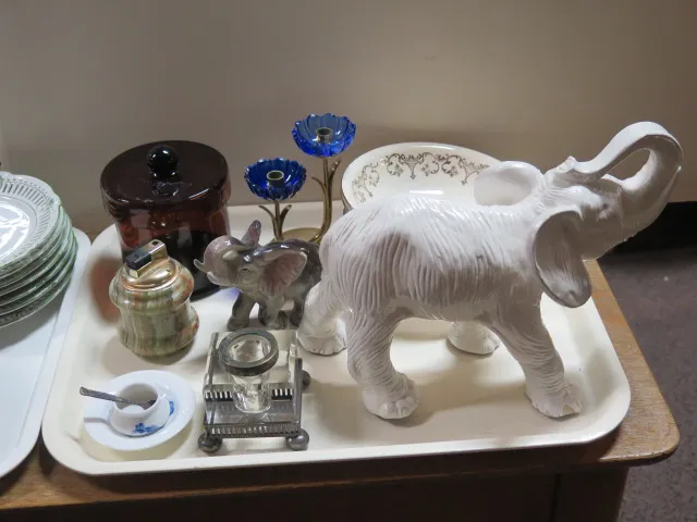 284. Bricka elefantfiguriner tändare lockburk saltkar...