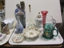 407. Bricka nipperask figuriner porslinsblommer mm
