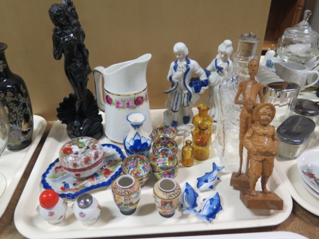 Bricka figuriner orientaliskt porslin karaff Pukeberg mm
