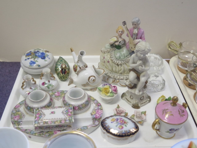 273. Bricka figuriner porslinsblommor skrivställ...