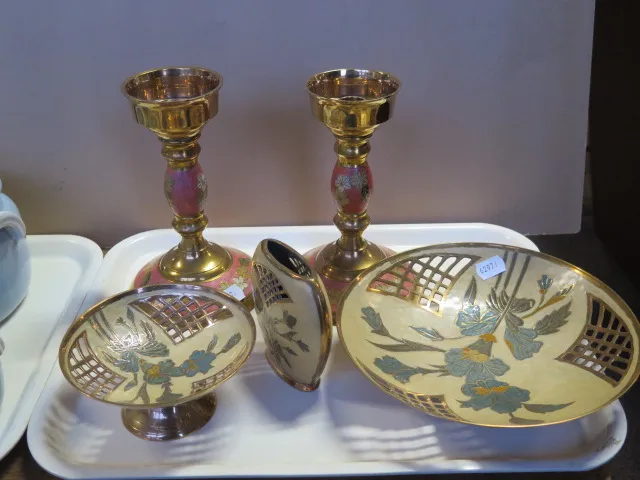 294. Bricka genombrutna metallskålar.. ljusstakar..