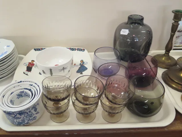 342. Bricka glas SagaForm rökfärgade likörglas vas konstglas mm